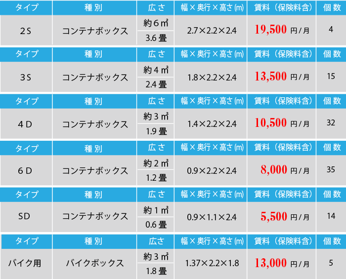 お客様のライフスタイルに合わせたサイズ・料金からお選び頂けます。