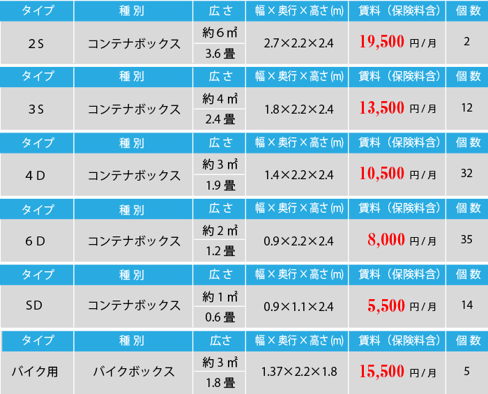 お客様のライフスタイルに合わせたサイズ・料金からお選び頂けます。